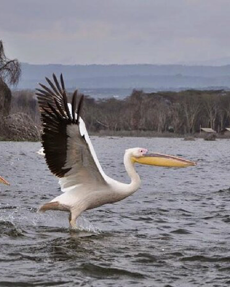 It is fringed by lush forests of yellow-backed acacia trees. The lake is overlooked by the ranged-edged of the volcanic Mount Longonot on the floor of the Great Rift Valley. It is home to about 400 species of birds. Wildlife including Giraffes, hippos, and waterbuck also live here. Nonetheless, the main attraction is the bird life, which is best observed on a boat ride.