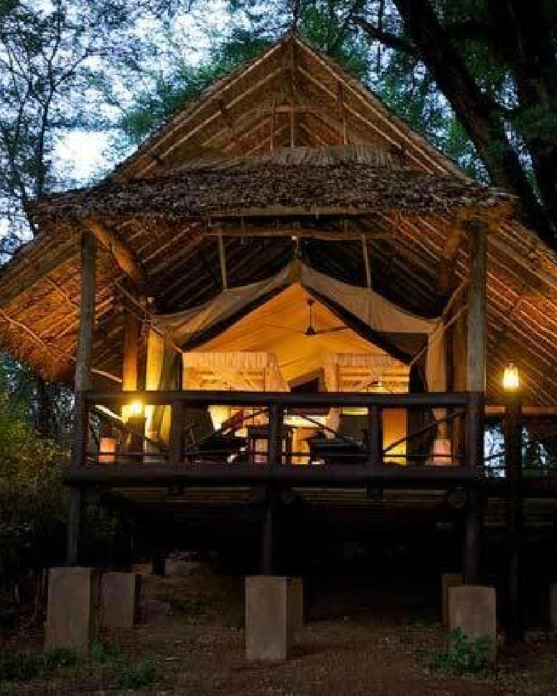 Frequent visitors are Elephants, Rhinos, Buffalo, and Giraffe Forest hogs overnight at tree hotel.