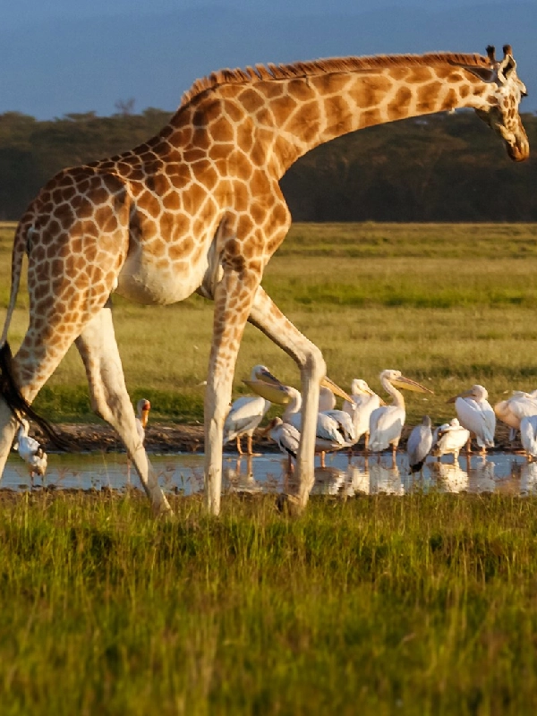 Find a scenic day trip to Lake Nakuru National Park, a paradise for bird watchers and wildlife enthusiasts. Depart from Nairobi in the morning, enjoying breathtaking views of the Great Rift Valley en route. Arrive at Lake Nakuru National Park for a mid-morning game drive, where you can spot diverse wildlife, including endangered White & Black rhinos, Rothschild giraffes, lions, leopards, and waterbucks
